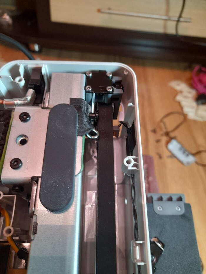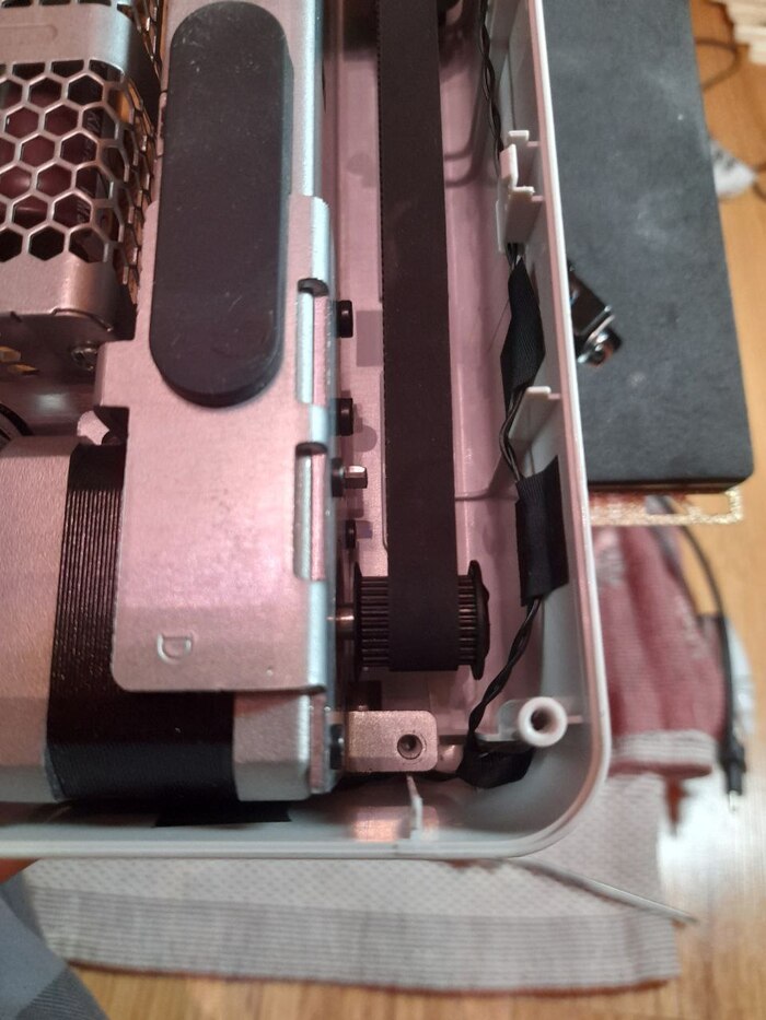 Выставить ремень - нудная задача. Без рельсы видно насколько принтер замарашка, это надо отмыть.