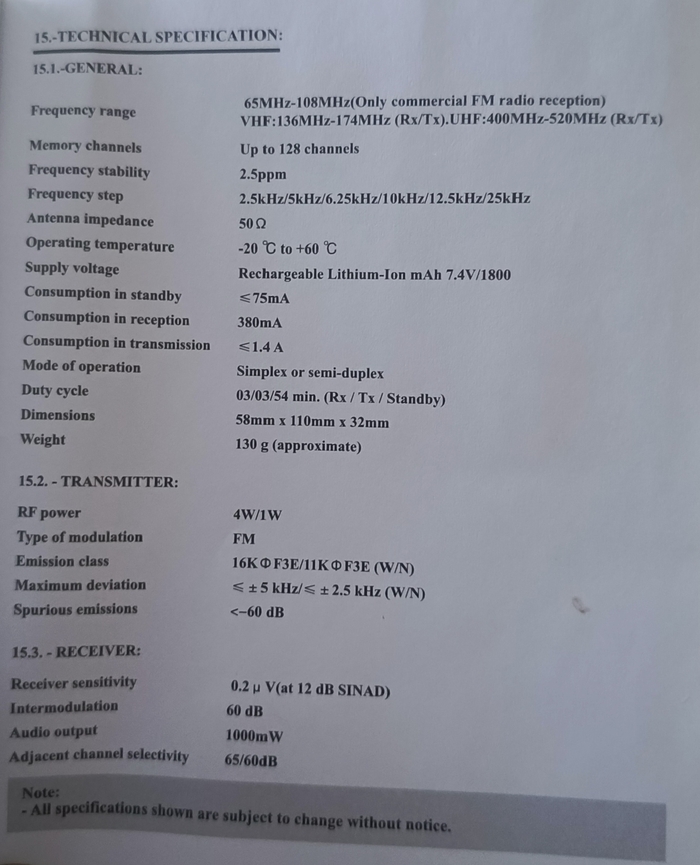 • Чувствительность: 0,25 µV (12 dB SINAD)
