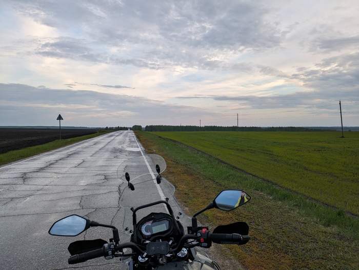 Забрал мотоцикл только ближе к вечеру и двинул к родственникам. Казань проводила порцией ливня, но стоило переехать реку Каму, как погода сильно улучшилась. Остаток поездки любовался красивым последождевым закатом.