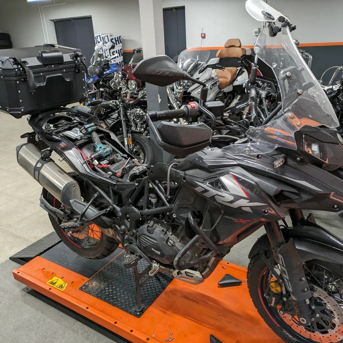 По деталям выяснилось, что у представительства Benelli в России нету ничего. Все под заказ напрямую с завода из Китая. По срокам обозначен был июль. Из списка деталей под замену решили не заказывать пока пластик (ибо долго по срокам, ирония, судя по тому, как добирались остальные. Ну и доехать обратно в Питер отсутствие пластика не мешает). В целом, не критично, подумал я и оставил мотоцикл на ремонте у дилера.