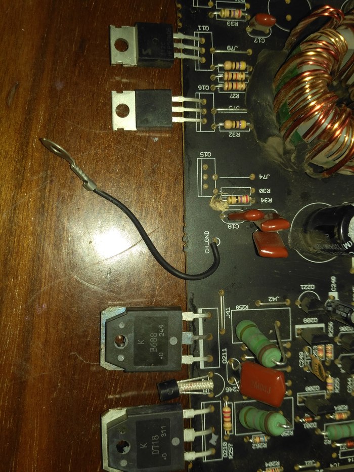 Всем привет! Говорю сразу о уровне знаний - чайник. Вообщем история данного усилителя такова... Начал, зимой, греться и через 30 минут работы на 50-70% мощности, уходил в защиту, решилась эта проблема заменой прижимных пластин частями радиатора от старой видеокарты и прорезкой отверстия в корпусе под кулер и установка самого кулера, работал он так отлично и не перегревался, потом, вот на днях, уходит усилитель в защиту (был не сильно горячий) и спустя некое время (минуты) сгорел предохранитель (20-ка), заменил при включении снова ушел в защиту при чем сразу же как только включился, разобрал подключил на прямую к АКБ без ничего, даже без корпуса и так же сразу уходил в защиту и перегорал предохранитель, почистил всё ватой и спиртом и где был припой наляпан счистил отверткой, но переусердствовал и появились мелкие сколы (подобные были и ранее без моего участия), после этих манипуляций подключал к АКБ и индикатор (лампочка) вообще не реагирует, смотрел видео и на одном из заметил что контакты были спаянные, а у меня там был скол как будто бы отбит и я его спаял но всё так же никакой реакции индикатора. Вопрос можно ли его восстановить и если да то что для этого делать? Все фото ниже. Заранее спасибо!