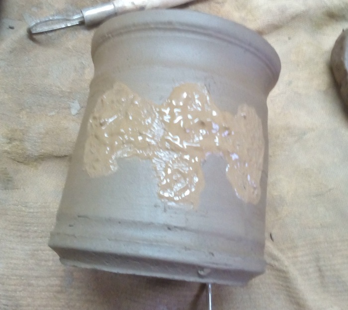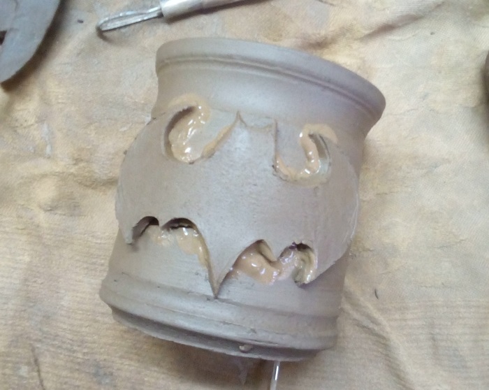Эту чашку котелок, я лепила из турецкой белоснежной глины, расписывала чёрной глазурью Mayco. На её роспись у меня ушло два дня.