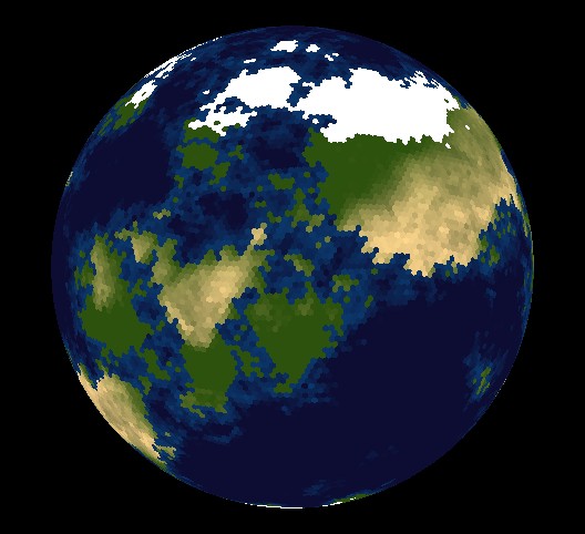 Если, в 3D игре, отобразить такую сферу, правильно построить сетку и UV развертку для всех клеток является творческой, но посильной задачей, то как отображать такой мир в 2D игре, на данный момент я не знаю, наверное, можно, каким-то особенным шейдером рисовать на текстуре проекцию карты. Если у тебя, дорогой читатель, есть идеи как это сделать, расскажи в комментариях как решать эту задачу!