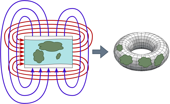 Мир-труба позволяет отправиться в кругосветное путешествие по горизонтали (параллельно экватору), при этом, юниты просто телепортируются с одного края карты на другой если подходят к краю слева или справа. А что если добавить такой же телепорт по горизонтали?