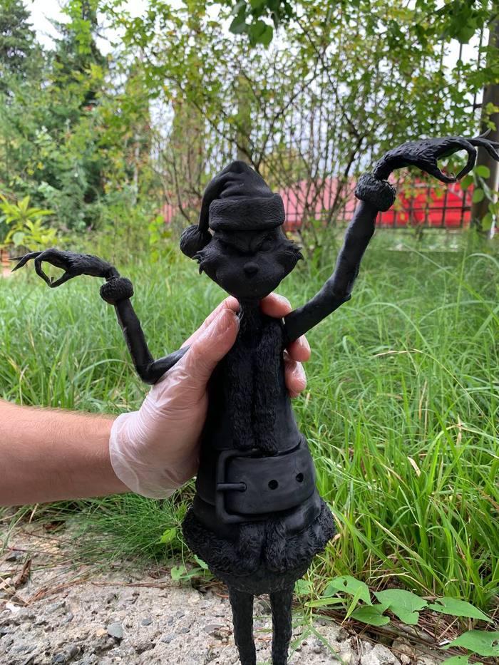 Продолжаем работу над статуэткой Гринча 50 см. Гринч будет держать ёлочные игрушки в виде голов различных персонажей.