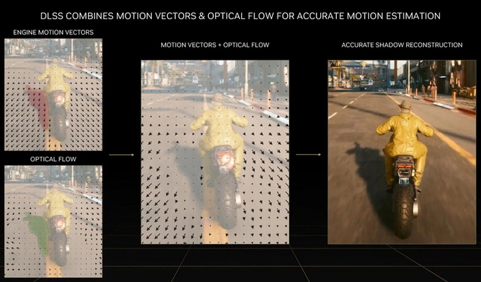 Скорость и направление движения точек анализирует специальный блок в видеокарте — ускоритель оптического потока Optical Flow Accelerator. В видеокартах RTX 4000 производительность ускорителя была заметно увеличена по сравнению с прошлыми поколениями: он научился работать с блоками размером 1х1 пиксель, по сути — с отдельными точками. Карты RTX 2000 и RTX 3000 такого не умеют, поэтому Frame Generation на них не поддерживается.