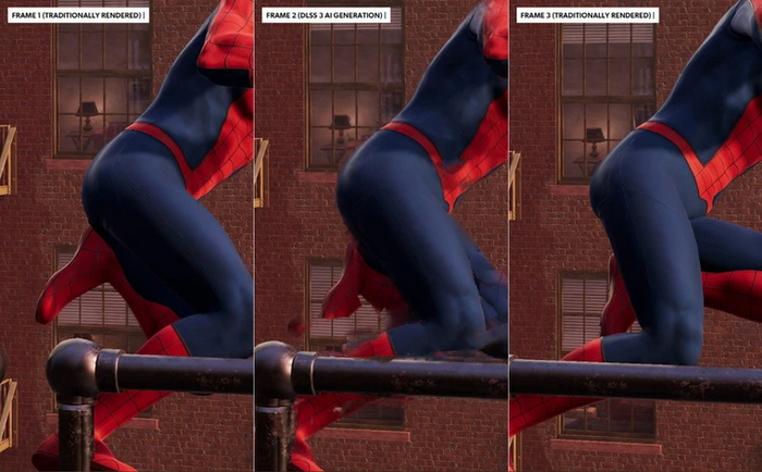 Генерация кадров имеет как светлые, так и темные стороны. В числе первых отсутствие упора в процессор, так как промежуточные кадры генерирует только видеокарта. Плюс к этому — практически двукратное увеличение производительности без необходимости снижать разрешение рендера.