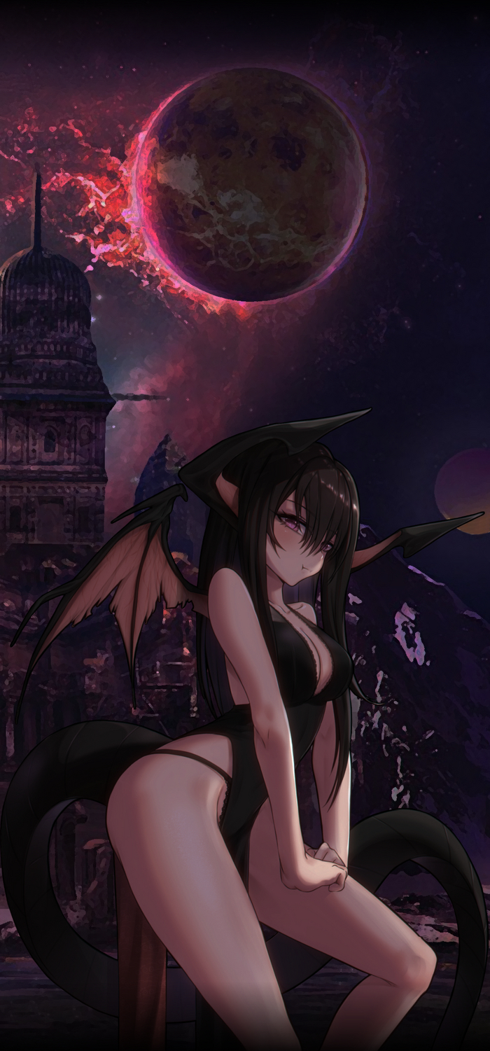 18+ Anime Art Аниме Original Character Девушка с рогами Хвост Крылья Dragon Girl