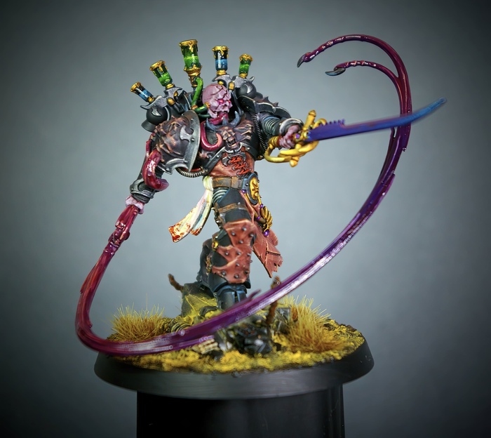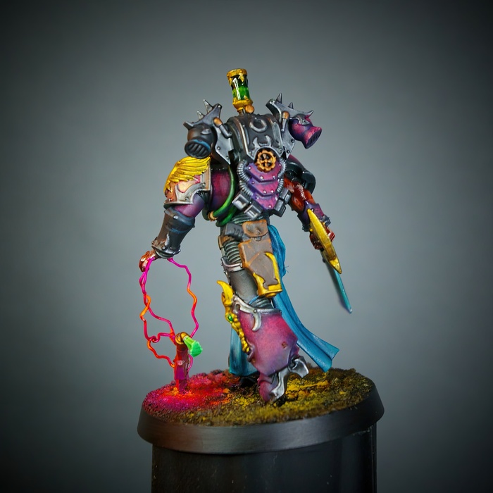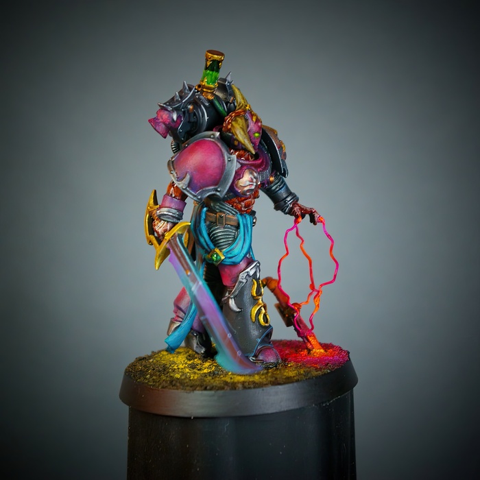 В поисках самых изысканных и извращённых ощущений Ксирваэль отверг обычные пределы плоти. Как смертоносная змея он выскользнул из кожи дарованной ему давным давно на Терре и переродился в нечто прекрасное. Варп превратил его обнаженные нервы в живые струны, на которых звучит бесконечная симфония боли и наслаждения.