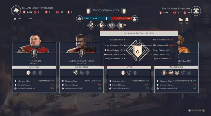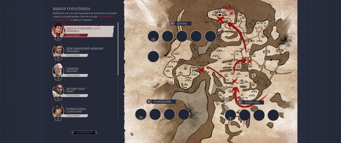 Неверно принятые решения приведут к смерти центурионов или разгрому с последующим отступлением. На финальных карточках новых значков не будет. Варианты вроде: добить, проявить милосердие, праздновать, сделать полевой лазарет - останутся без изменений по функциям.