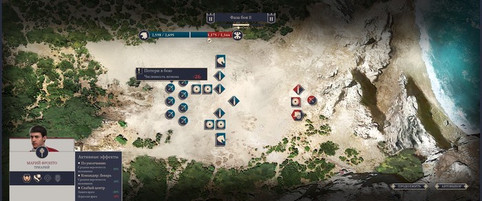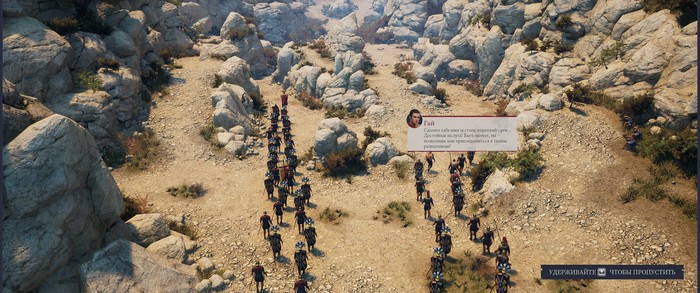 К слову, похождения нашего юного легата в составе группы из пяти человек в целом обоснованы с сюжетной точки зрения. А минорными активностями занимаетесь не вы, а ваши преторы, ибо негоже командующему разрешать проблемы местных поселенцев. Большинство крупных событий, будь то захват городов и областей или же приведение провинций к порядку производятся с помощью верного инструмента Римской республики - легиона. Назначив центурионов и укомплектовав последний, вы отправляете своих доблестных вояк на захват и затем начинается фаза сражения. В ходе противостояния вам предстоит отдавать приказы войскам, которые по своему разумению выполняют центурионы и передают своим центуриям. Та или иная тактика имеет как сильные, так и слабые стороны. Универсального ответа нет, так как сам враг тоже весьма неглуп и любит резко менять тактику или же неожиданно вводить в бой резервы, и вам приходится реагировать на вызовы.