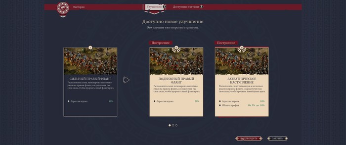 В ходе сражения, как и ранее, игрок и противник будут выбирать тактики. Разница в том, что на карточках напишут конкретные значения, влияющие на описанные выше показатели. Так можно понять, как контратаковать эффективнее, и как лучше наступать.