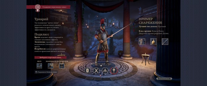 И тут игра ударила меня прямо сразу не в бровь, а в глаз. И выбор исторического периода и изобилие отсылок на реальных персонажей и события. Это просто шикарно. Конечно держим в уме, что это всё таки игра, в которой мы поведём историю. Так что такие абсурдные мелочи вроде возможности выбрать женского персонажа (для службы в армии в Риме?) не особо меня напрягают.