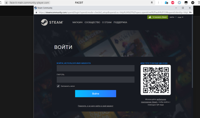 Первый раз меня заманили перейти в команду, где справа в блоке "About" был значок и мне сказали перейти по нему. Ссылка вела на страницу, напоминающую интерфейс Faceit с выбором сервера и языка. Назывался сайт Faceit hub. (Если данный сайт у фейсит существует объясните пожалуйста, что это за сайт, о чем он). Всё выглядело вполне правдоподобно. И вот в какой-то момент, как по волшебству, мне эта ссылка предлагает зайти в Steam для верификации. Я естественно сразу подумала: Зачем мне снова заходить в Steam, если я уже привязала аккаунт?