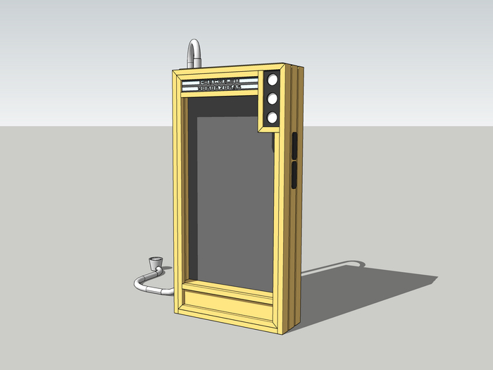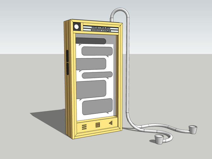 Для соответствия образу были добавлены декоративные кнопки по бокам, ящик для хранения за кнопками на главном экране, имитация фронтальной и основной камер (можно дополнить светильниками на батарейках) и даже наушники из цветочных горшков (или опять же светильников) и гофрированной пластиковой трубы D50 мм на каркасе из арматуры D6 мм.