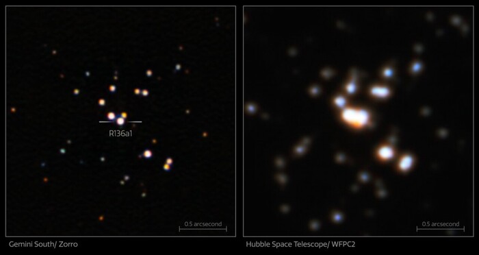 В попытке уточнить характеристики R136a1, астрономы решили воспользоваться приемником Zorro, смонтированном на 8,1-метровом телескопе Gemini South в Чили. В ходе серии наблюдений ему удалось получить наиболее четкие в истории изображения R136a1 и окружающих ее звезд.