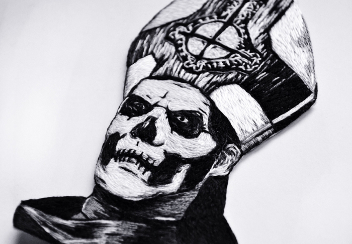 Всем привет! В комментариях меня просили выложить процесс вышивки. Сейчас я работаю над более масштабным проектом — это будет панно с главным героем клипа Ghost — Dance Macabre. :)