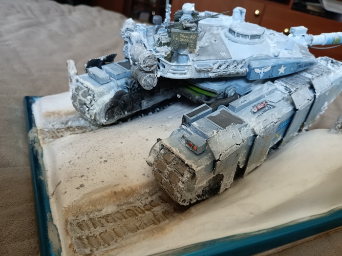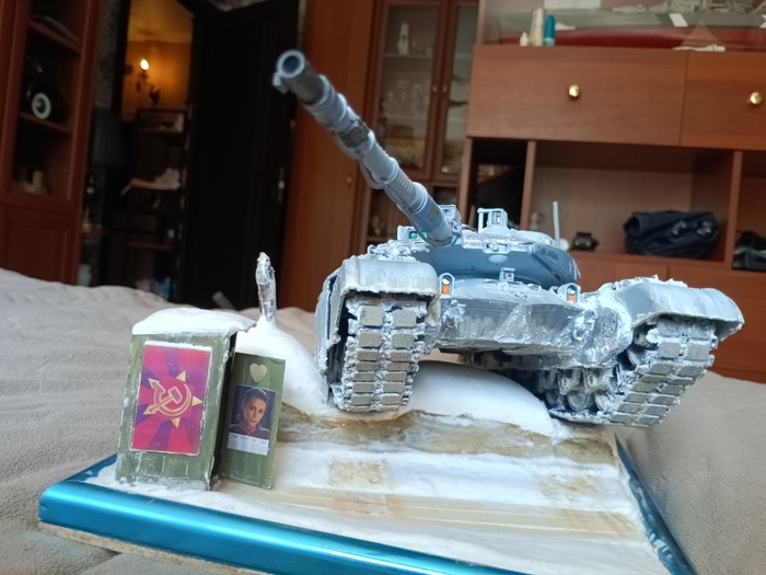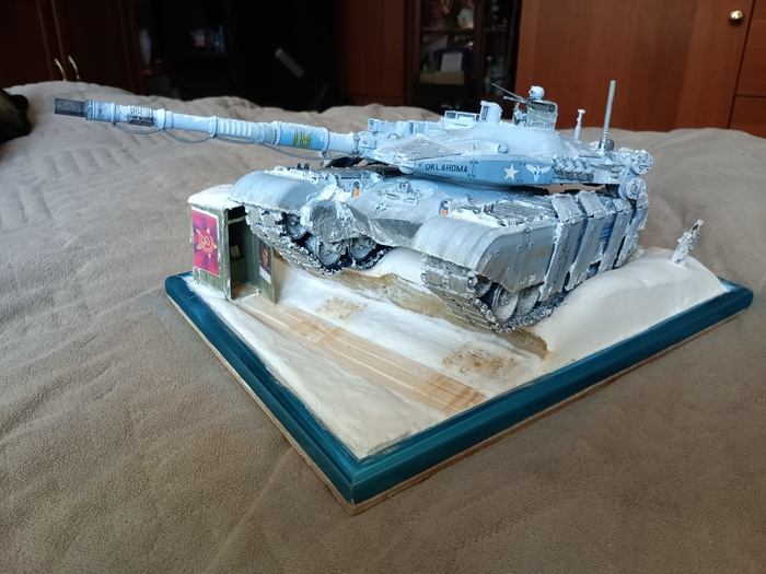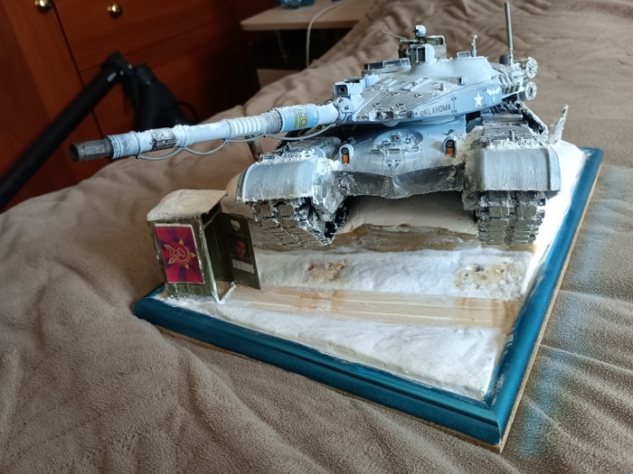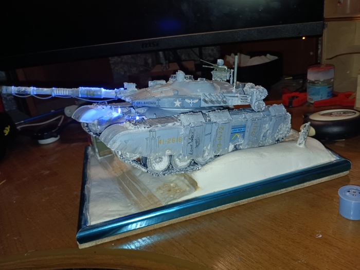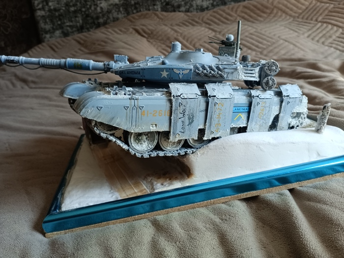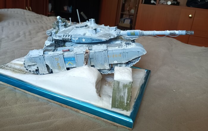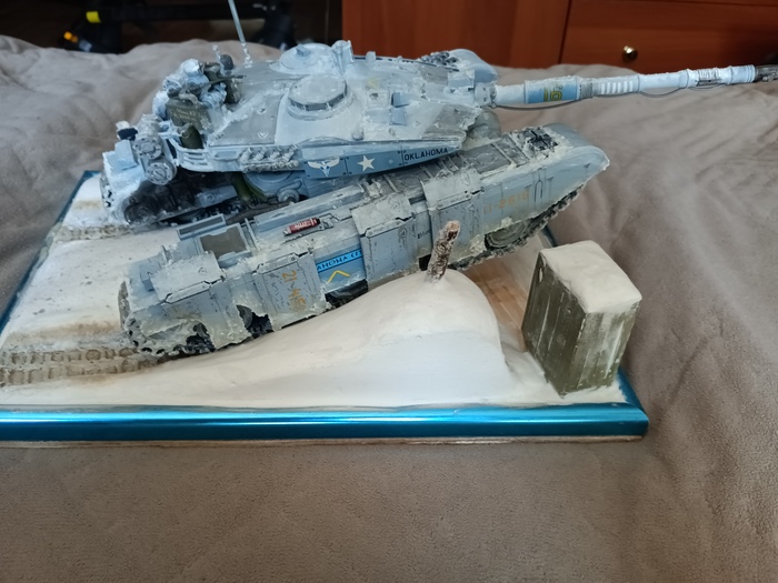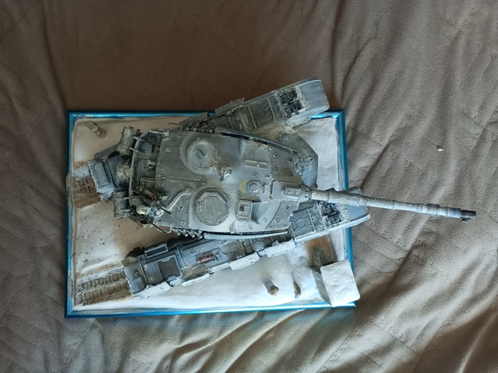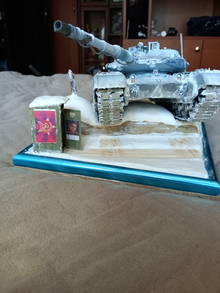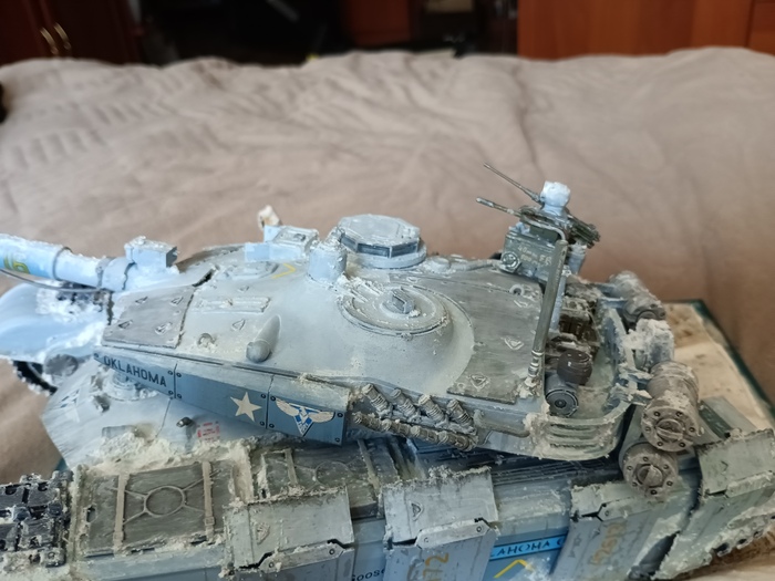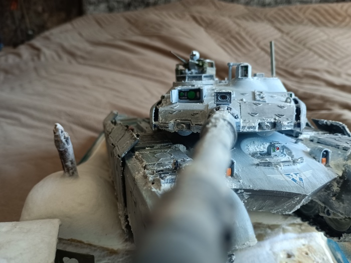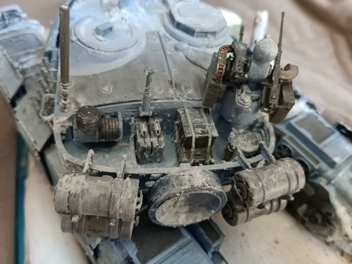 Затем наношу го́вны,потертости,снег.попутно ломаю на башне ствол кулемета(я вообще думал,что сломаю зеленую антенну,тк она на соплях висит)))