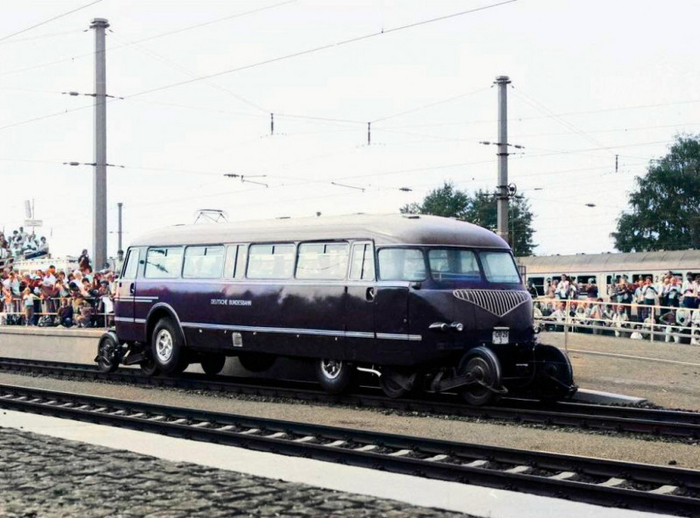 Рельсовый автобус, также называемый Schi-Stra-Bus, (Schienen-Straßen-Bus) является многофункциональным транспортным средством, предназначенным для перевозки пассажиров как по дорогам общего пользования, так и по железнодорожным путям. Немецкая федеральная железная дорога (DB) использовала такие в качестве пригородных поездов.