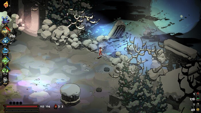 Теперь про игру. О том, что Персефона мать Загрея, мы узнаём на самом деле далеко не сразу, но в тот момент, когда это прояснилось, я начал прикидывать пятку к носу. А уж когда нам показали сначала Деметру в шубе из льда, а потом и поверхность, покрытую снегом, стало понятно, что у нас тут ранняя версия этой ситуации, и Персефона почему-то зависла где-то между Олимпом и царством Аида. Ну а Загрей, соответственно, должен разрешить ситуацию и устаканить положение дел. Ага, щас.