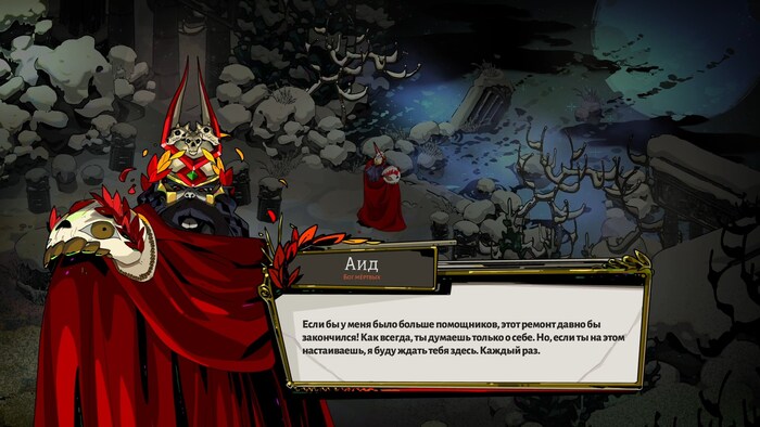 Из-за всего, что я описал выше, от игры остаются очень двойственные впечатления. С одной стороны, я в абсолютном восторге и доволен каждым из 80 часов, проведённых в Hades. С другой стороны, были предательские минуты, когда я ругался и разве что в монитор не орал по старой доброй привычке, настолько меня душили некоторые ситуации. Отдельно бесила невозможность продолжить диалог вот прямо сейчас. Что особенно давит на нервы как раз ближе к завершению основного сюжета игры. Спойлеры, да.