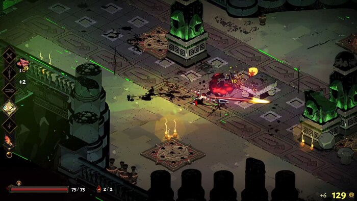 Так вот, у меня был финал игры, где я, взяв по дороге пару удачно попавшихся улучшений Эгиды от Дедала, просто стою и жду, пока Аид, финальный босс всея игры, убивается об этот самый щит. Он блокирует абсолютно любой урон, а улучшение позволяет мне из блока ещё и стрелять. Как итог — я ни одной жизни тогда не потерял. Да, тут есть жизни.