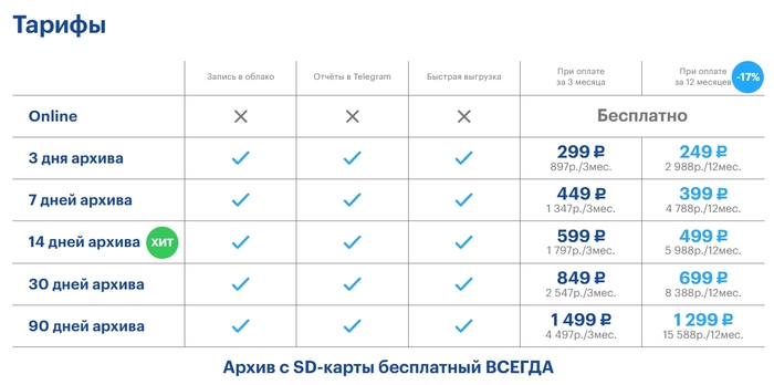Вообще, базовый бесплатный режим есть: запись ведется на карту памяти. Но подходящей microSD под рукой не оказалось (заказал, жду доставку), поэтому решил протестировать платную подписку.