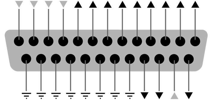 на фотке - уже промеченные мной контакты платы. А7-А0 под оси и крутилки, остальное идет под кнопки (сдвиг регистры)