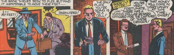 Второй пистолет стреляет усыпляющим газом – достаточно сильным, чтобы усыпить гориллу с пары вдохов, но при этом достаточно щадящим, чтобы обычный человек не уснул навсегда. Газ довольно быстро распространяется и способен в замкнутом помещении усыпить целую группу людей (и сверхлюдей), и он пробирается под противогаз (кстати, сам Сэнд к своему газу невосприимчив, а противогаз носит ради стиля. Ну и ради всяких прибамбасов в линзах, типа увеличения, ночного зрения и защиты от смертоносного взгляда Джонни Сорроу). А если вам кажется, что в вашей жизни недостаточно бесполезной информации, то вот ещё – усыпляющий газ Сэнда пахнет фиалками.