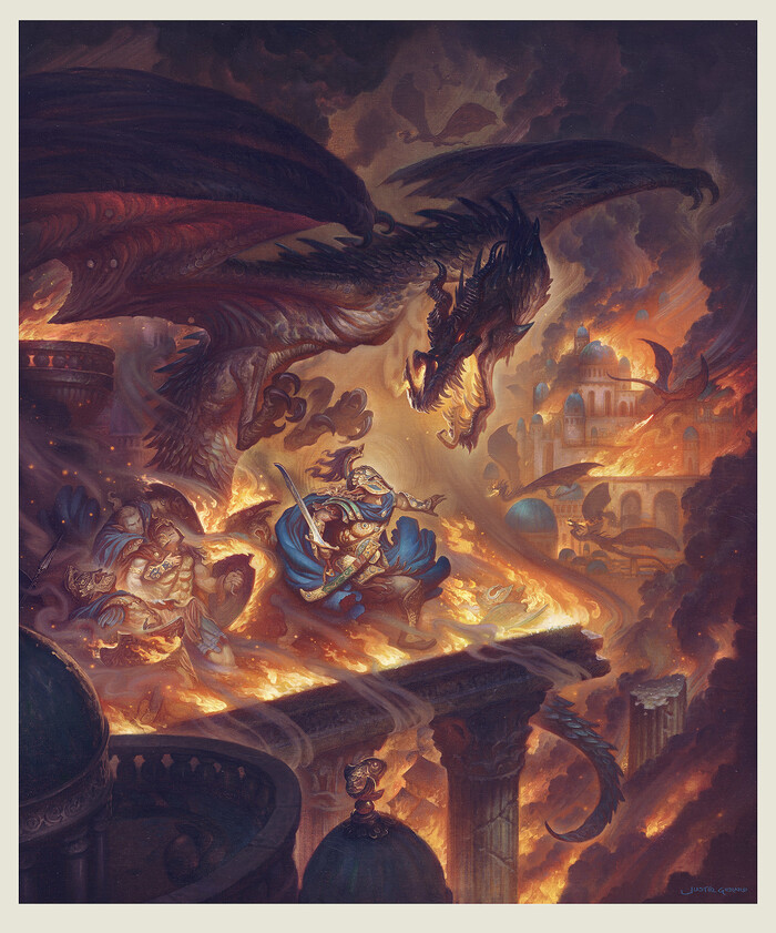 Рисунок Девушки Дракон Руины Justin Gerard Арт