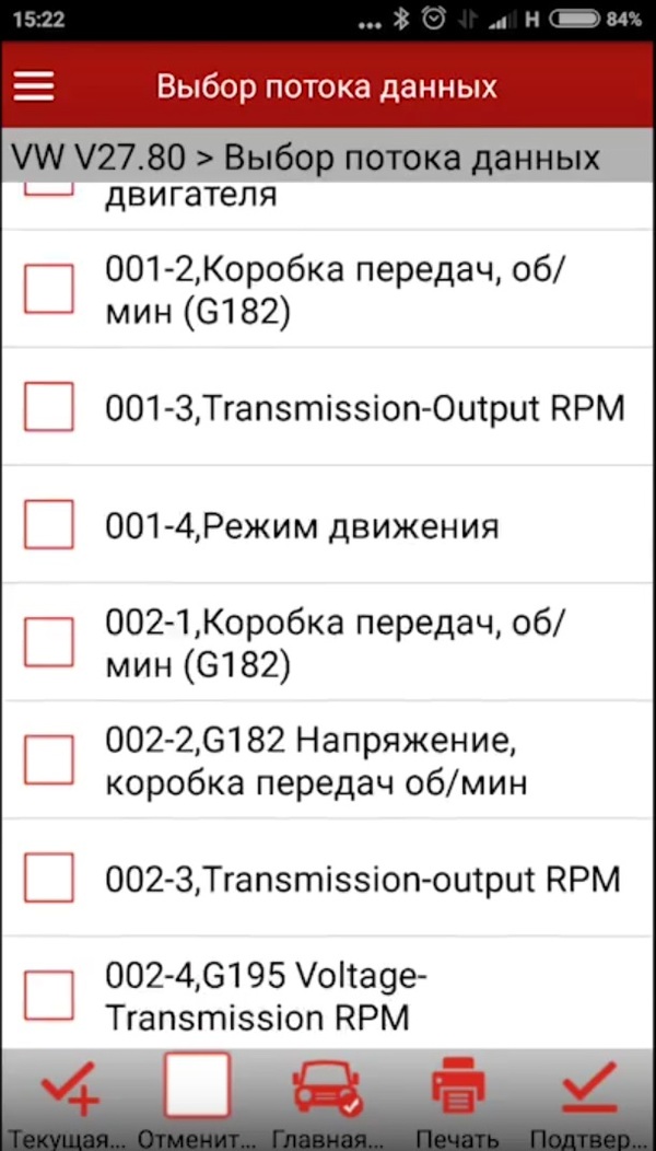 Так выглядит список доступных потоков данных, для этого блока управления.