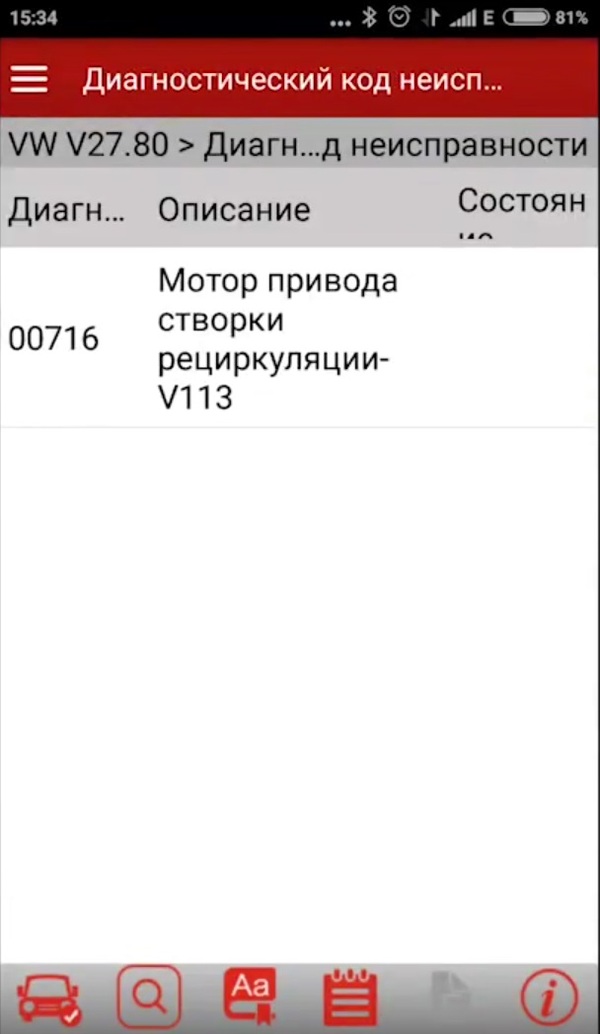Нажимаю сброс памяти неисправностей. Кодов неисправности больше нет. За кадром я включаю рециркуляцию воздуха внутри салона и снова проверяю наличие ошибок.