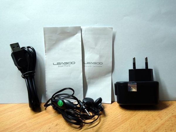 Смартфон поставляется с классическим комплектом: micro-usb кабель, блок питания 5V/1A, дешевая гарнитура, инструкция, гарантийный талон, и конечно же смартфон.