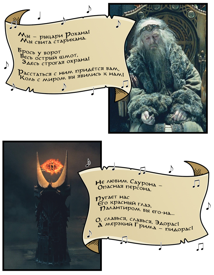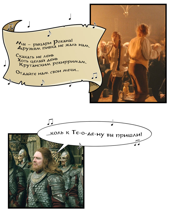 Зарисовка по мотивам сцены с Камелотом из «Монти Пайтон и Священный Грааль». Цитаты из фильма — по дубляжу VHS-издания, песню перевёл Swamp Dog.
