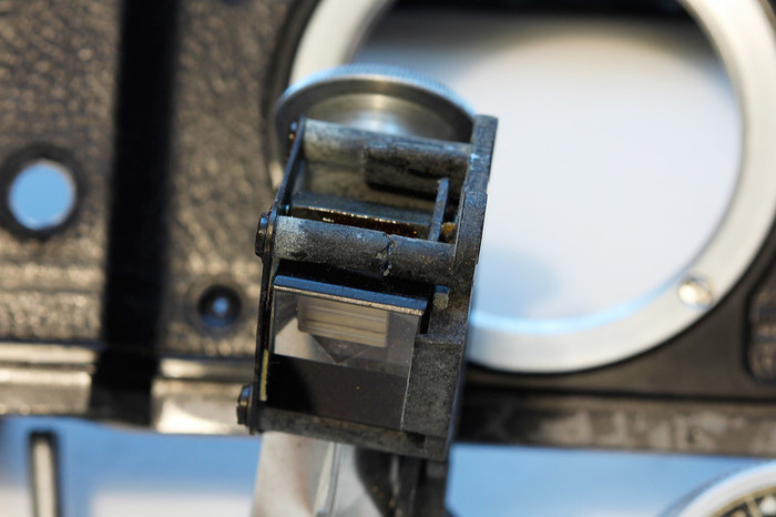 И только все отпаяв и вытащив пентапризму можно откручивать переднюю стенку с байонетом и шахтой зеркала: