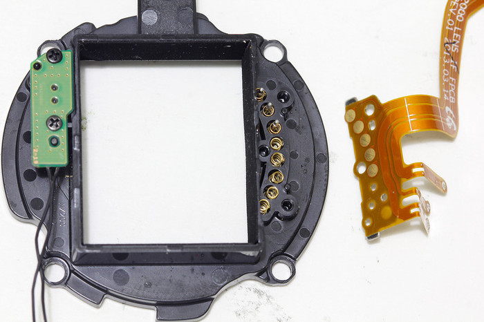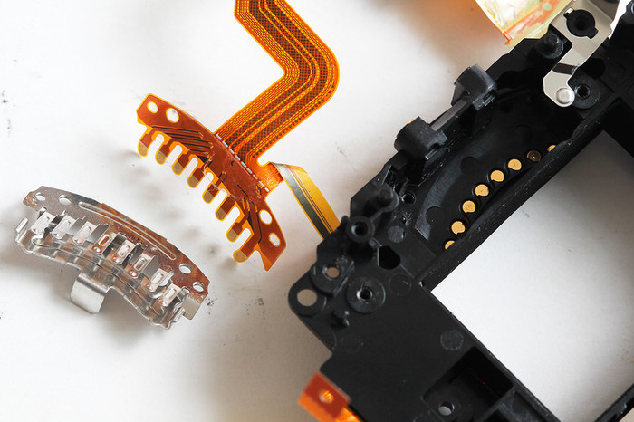 Шлейф проходит через весь фотоаппарат и его надо везде отпаять: