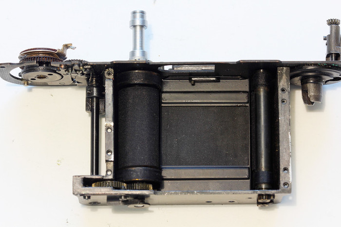 С другой стороны находится механизм установки положения диафрагмы. В нем была причина нестабильной экспозиции кадров. Нужно было всего лишь прицельно капнуть маслом на оси шестеренок и механизм стал успевать закрывать диафрагму до срабатывания затвора.