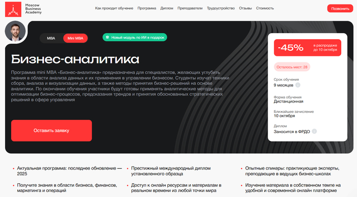Бизнес-аналитика от MBA – курс с возможностью выбора специализации для углубления профессиональных знаний.