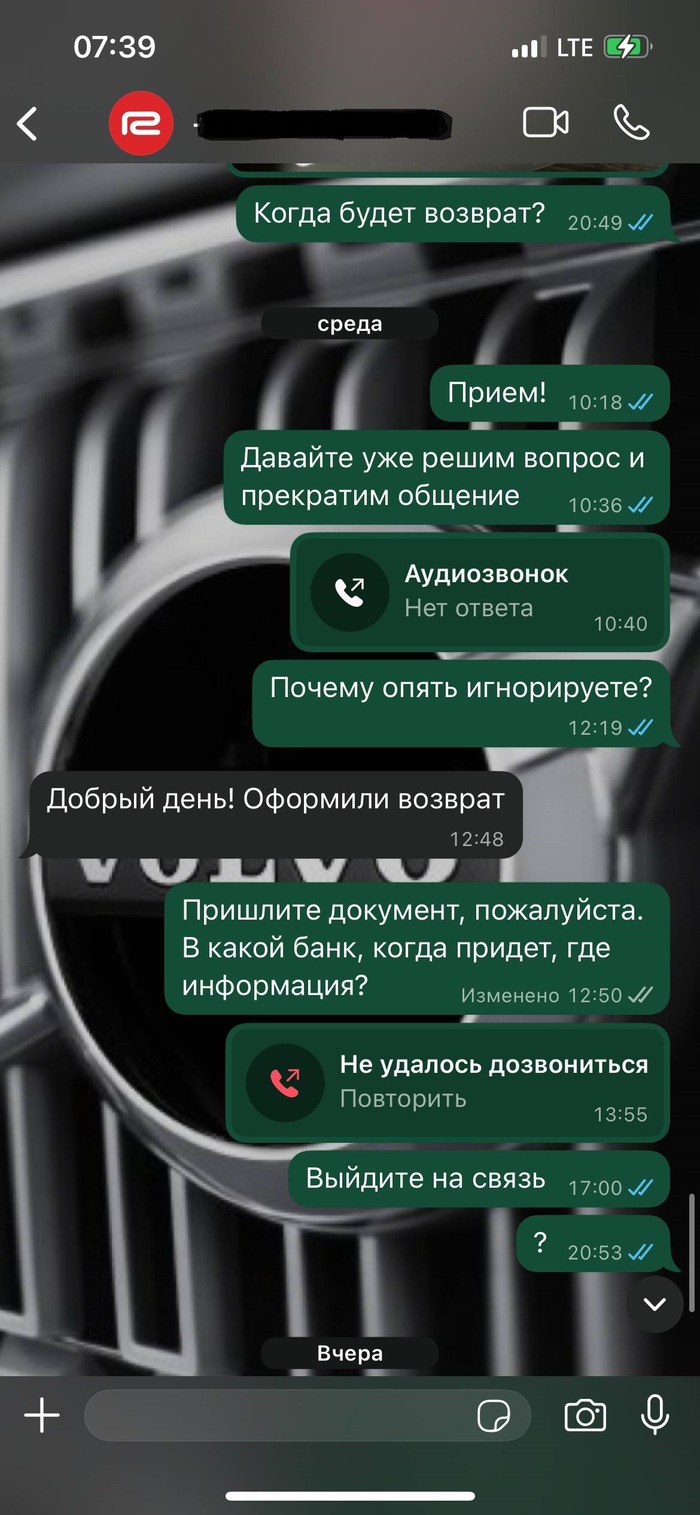 Договариваемся о возврате. Вроде договорились, но в течении нескольких дней тишина... ПОтом говорят что все оформили, хотя даже не спрашивали ни документов ни куда переводить и тд... Сейчас просто не отвечают совсем!