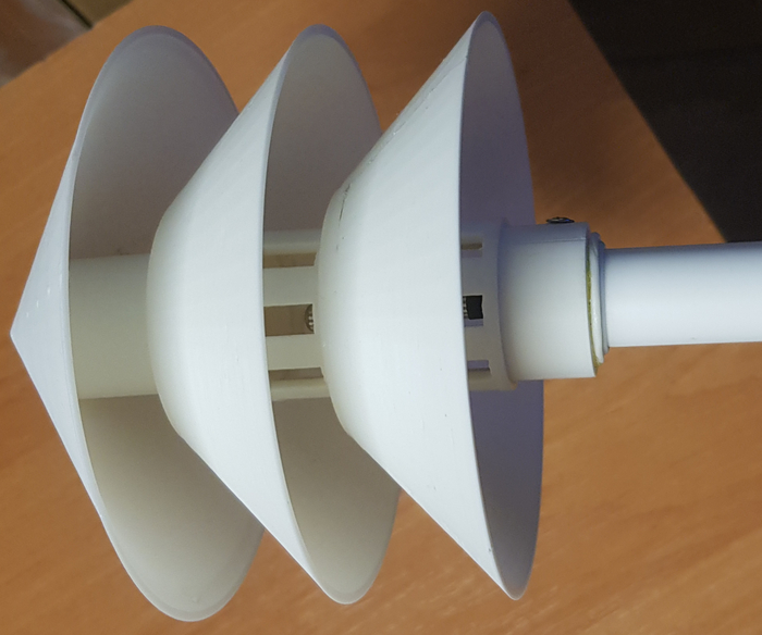 Из труб сварил кронштейн, напечатал также защиту от дождя и солнца для датчика, проектировал сам, опыта очень мало. За качество фото заранее извиняюсь.