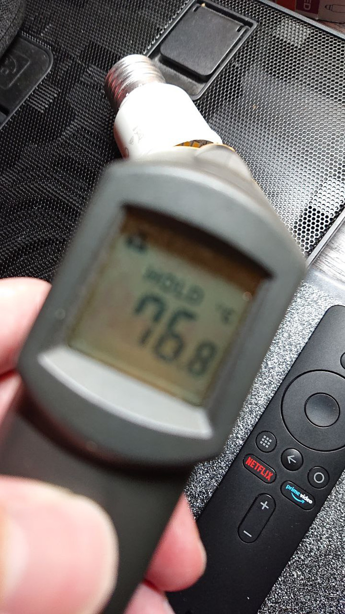 ...вернемся к температуре, так как плата покрыта краской, а светодиоды силиконом - температуру нам не померять нормально...
