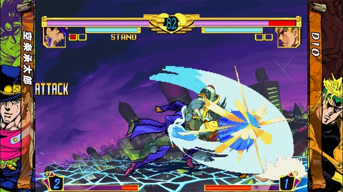 14 октября 1998 года на аркадных автоматах вышел файтинг (Угадайте название) JoJo’s Bizarre Adventure. Разработчиком игры стала компания Capcom, преуспевшая в этом жанре такими сериями как Street Fighter, Darkstalkers и игрой X-Men vs. Street Fighter. Позднее игра вышла на PlayStation, Dreamcast, а также облачных сервисах PlayStation Network и Xbox Live Arcade с обновлённым названием JoJo's Bizarre Adventure: Heritage for the Future.