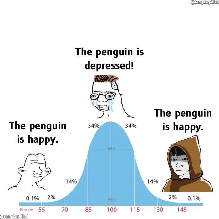 Честно говоря, даже навешанный всякими шутками и дурацкими шаблонами, этот смысл все равно работает. Эти следы лапок, спинка пингвина и уход в закат - мне почему-то не хочется смеяться, и пользователи пишут, что мем тоже ввел их в экзистенциальную тревогу и меланхолию. А кого-то, возможно, вдохновил на перемены.