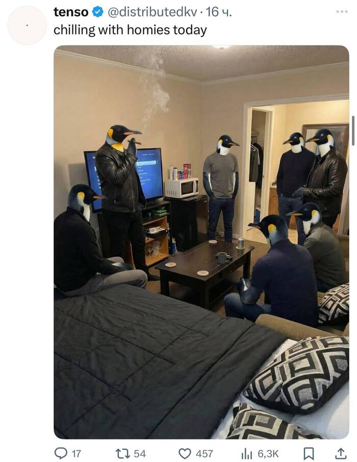 Получился такой экзистенциальный мем об одиночестве, внутренней свободе и истинном пути. Конечно, все сразу захотели быть этим пингвином, потому что он олицетворяет то, чего не хватает большинству из нас.