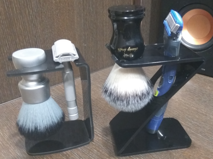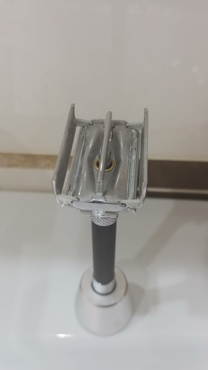 Второе бритьё. Muhle R41 и Qshave на шестой настройке. Распаривал шетину 4 минуты. По росту оба станка шли довольно неплохо. Угол у R41 всегда ловится более правильный, ибо когда неправильно держишь станок, то сразу начинает неприятно ощущается. Т.е. он лучше дает понять как держать угол. А вот у Qshave угол ловится сложнее, станок мне всегда казался неинформативный. При бритье против роста R41 начал ощущать сопротивление волоса. Qshave же сопротивления не ощущал, но было чувство, что лезвия или дребезжит, или плохо закреплено. При бритьё под носом Qshave об что-то поткнулся получился небольшой порез, большой ГАП дал о себе знать. Пробрили же в целом одинаково. По итогу, у R41 был только недостаток в том, что ощущалось легкое сопротивление при бритье против роста (или вес станка нужно больше делать, или лезвия острее, или щетину ещё больше распаривать), но по маневренности, по габаритам головы, по информативности, по фиксации лезвия - R41 оказался лучше. Кстати, ранее пробовал ставить на R41 ручку из нержи - станок хуже ощущался. Ему больше подходит именно радная ручка.