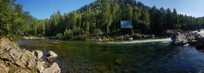 Чуть меньше сорока километров и мы у промежуточной цели покатушки. Большой Казыр. Приток Томи. Серьезная река с категорийными порогами, натурально мекка местных водников, в сезон не протолкнуться, народ на чем только не пытается самоутопиться.