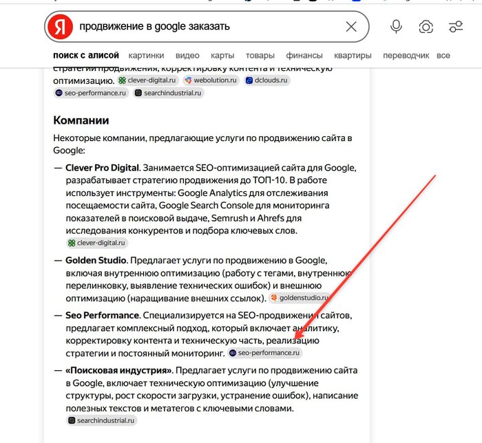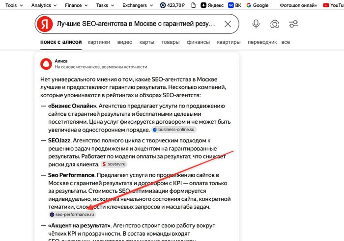 Яндекс.Нейро, Алиса, Google AI Overview / ИИ Mode, ChatGPT, Perplexity, DeepSeek и др.
