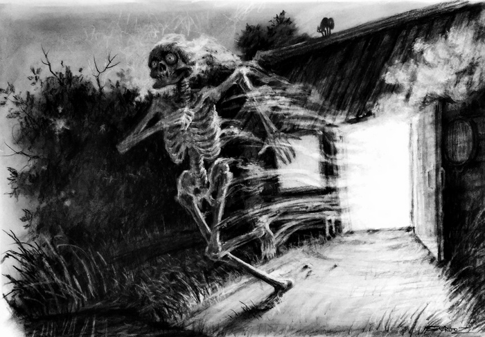 3) Частично с помощью RemBG, частично руками вырезал с исходного изображения маленькую Смерть и объекты на переднем плане и наложил их поверх травы из последнего кадра видео. Сделал две картинки - для начального и конечного кадра видео (обе картинки конечно прозрачные:, а с не белым фоном, но на Пикабу прозрачность не показывается).