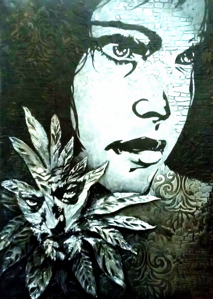 Портреты с использованием штукатурки(использую к.фуген). Сначала грунтую кварцевым грунтом нужный мне формат(ОСП). После накидываю штукатурку кельмой на грунтованный ОСП и портрет готов))) Ну ладно-ладно) После того как грунт высох, наношу кельмой штукатурку тонким слоем, создавая предварительный декоративный фон. Пока сохнет заготовка, я согласно задуманному эскизу делаю трафарет из плотной бумаги( вырезаю вручную). По высохшему фону, мастихинами из замешанной штукатурки, формирую задуманную композицию. Опять жду пока высохнет. И после высыхания, с помощью трафарета и акриловых красок рисую лица героев. После прорабатываю портрет кистями (краски использую строительные,как правило колоранты, которые можно использовать как готовые краски) Готовый портрет покрываю акриловым лаком.