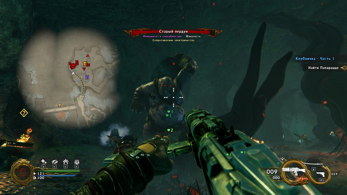 Оружия в игре действительно много – и оно не просто разнообразное, а местами откровенно безумное. Помимо привычных дробовиков, УЗИ и ракетниц, есть настоящие шедевры дизайнерской фантазии: например, голова Хранителя, способная выпускать огненные атаки в трёх режимах, которыми герой управляет, нажимая пальцами на разные участки мозга. Или сердце Риппера, призывающее фантомную версию главного героя, стреляющую из рельсотрона. При этом каждый образец имеет альтернативный режим стрельбы, благодаря чему можно подстраивать стиль игры под текущую ситуацию, а не полагаться на один универсальный способ. В итоге Shadow Warrior не превращается в простую беготню с зажатой кнопкой стрельбы – игра поощряет экспериментировать и находить собственный стиль прохождения.